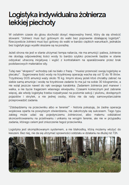 Ebook to prawie 170 stron wiedzy na temat wyposażenia, jaką jej autor zebrał przez 10 letnią służbę w Wojsku Polskim na różnych etatach bojowych. Teraz dostępna jest ona dla wszystkich w formie jedynego takiego kompendium.