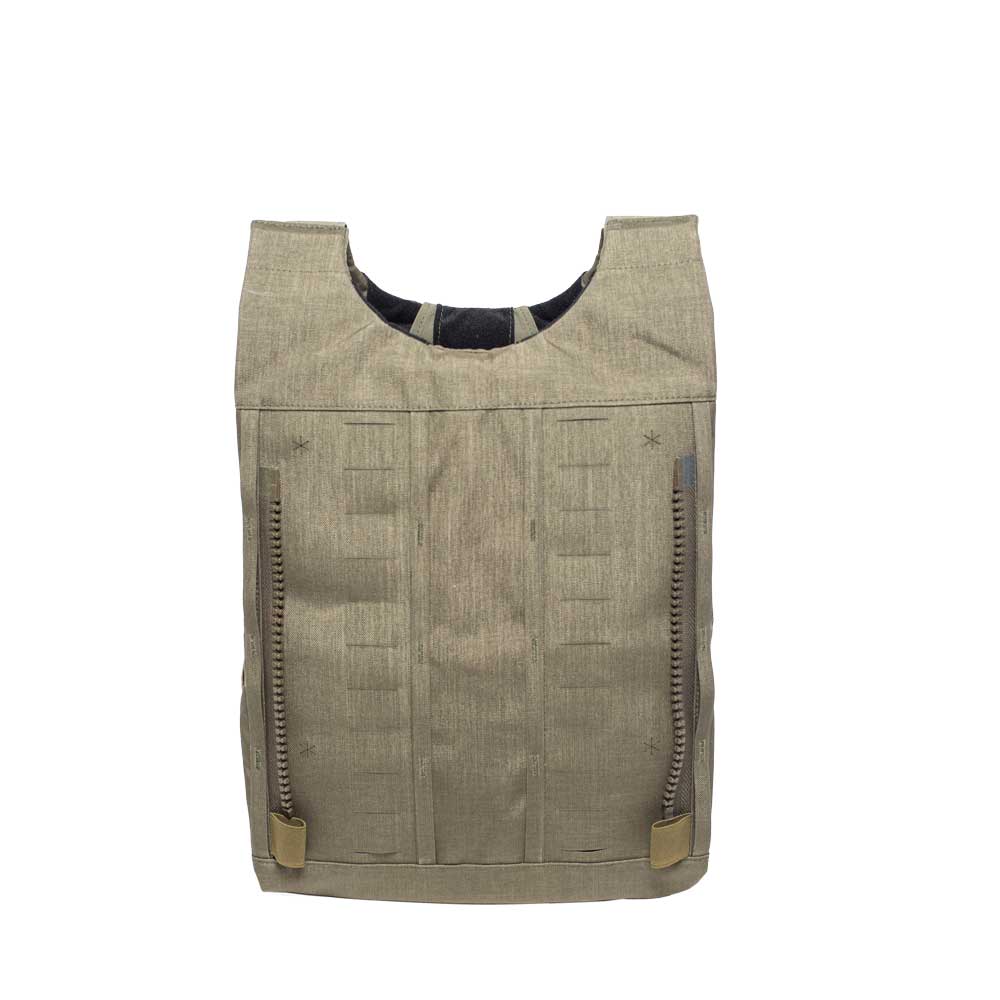 Tylni pokrowiec kamizelki zamykany jest na klapę, która jednocześnie zabezpiecza tył bocznych pasów spinających, jak i balistykę. Element wykonany jest z dużego rzepa umożliwiającego zarówno regulację, jak i dającego pewność, że płyta nie wypadnie w trakcie działań.